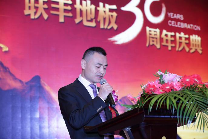 對于一個人來說,三十歲是風華正茂的年紀,是真正開啟事業的年紀,但是對于聯豐這樣一個以地板為主營業務的企業來說,三十年所代表的含意卻更為深遠。首先,聯豐是中國地板行業首個迎來三十周年慶的品牌,這不僅是歷史悠久的企業榮耀,同時也意味著身為領軍者所應承擔的行業責任。其次,聯豐地板走過的三十年,幾乎與改革開放的歷程相重疊。作為中國夢在地板行業的縮影,聯豐地板與中國家庭共同走向了富裕和繁榮,聯豐創造的產品和服務,在此期間為成千上萬的家庭帶來了更好、更美、更健康舒適的生活體驗;與此同時,聯豐地板也因而實現了自身的價值,并獲得了堪稱榮耀的成就。而這一榮耀,我認為應該屬于今天在場的所有人,屬于所有指導、幫助我們前進的領導和朋友們,屬于和我們共同開拓市場、服務客戶的合作伙伴們,屬于信賴我們、支持我們的消費者們,也屬于為聯豐事業默默付出、奉獻出智慧和辛勤勞動的聯豐員工們!所以,我要衷心的感謝你們!