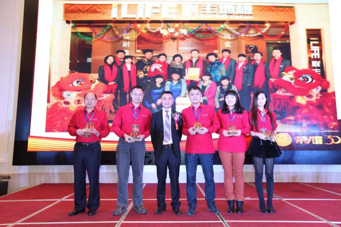 走過30個年頭的聯豐,今天能夠在品牌云集的中國地板行業有自己的一片新天地,能夠成為行業的佼佼者,能夠備受業界所尊重,有這樣一個群體,功不可沒。在困難面前,他們沒有畏懼與退縮,在誘惑面前,他們沒有心動,在低迷面前,他們沒有迷茫和彷徨,多年來,他們始終一路相伴聯豐,抗風雨,迎彩虹。他們理所當然的榮獲“榮耀30年功勛獎”,他們是來自于江西撫州胡信和、陜西西安周忠、浙江嘉興顧偉、湖北武漢劉杰、安徽池州劉曉斌。有請為蘇州聯豐木業有限公司董事長沈建新先生為他們頒獎。