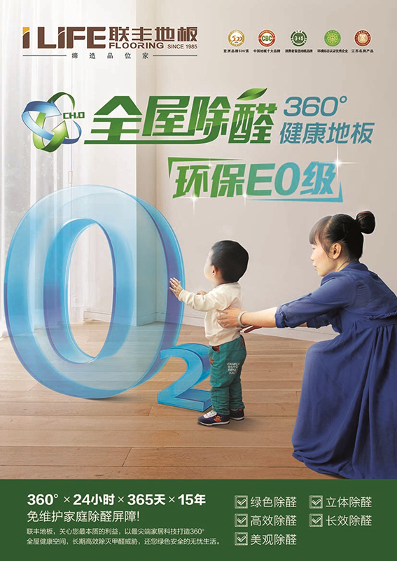 始創(chuàng)于1985年,具有三十年地板專業(yè)生產(chǎn)經(jīng)驗(yàn)的聯(lián)豐地板,以行業(yè)領(lǐng)軍品牌的責(zé)任與義務(wù),憑借多年的技術(shù)積累與專研,填補(bǔ)了這一市場(chǎng)空缺。2014年10月,歷經(jīng)三年打造的一款具有全面綜合性能和絕佳使用價(jià)值的新一代創(chuàng)新型科技產(chǎn)品——聯(lián)豐“全屋除醛”360健康地板震撼上市,它完全選用EO級(jí)環(huán)保基材,采用由海洋無脊椎動(dòng)物中提取的生物高分子聚合物——甲殼素(Chitosan),配合極具有機(jī)和無機(jī)物質(zhì)捕捉特性的天然納米硅片(Nano Silicate Platelet),植入環(huán)保水性涂料之中,形成天然“大分子除醛基團(tuán)”,均勻散布于“地板皮膚”,以極大的接觸面積和空氣對(duì)流效應(yīng),高效捕捉室內(nèi)由家具、板材及涂料中揮發(fā)的甲醛,并將之分解成微量的水汽和揮發(fā)性極低的無害物質(zhì)“肟”,實(shí)現(xiàn)全屋廣角徹底凈化空氣中甲醛分子。根據(jù)國家權(quán)威機(jī)構(gòu)科學(xué)檢測(cè),聯(lián)豐除醛地板可以高效除醛壽命長達(dá)15年,有效除醛壽命更達(dá)20年,完全超越了家居產(chǎn)品的甲醛釋放周期,可謂是真正一款不僅自身“無甲醛”且能夠“除甲醛”的高科技產(chǎn)品。