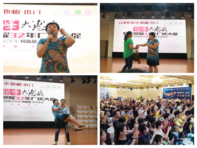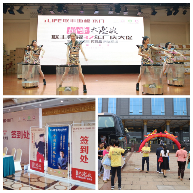 9月11日,巔峰大惠戰(zhàn)—聯(lián)豐榮耀32年廠慶大促·長(zhǎng)沙站在星城長(zhǎng)沙明城國(guó)際大酒店正式打響,此次大惠戰(zhàn)是聯(lián)豐地板繼7月23日南京站大捷之后的再一次全國(guó)大型巡回促銷(xiāo)活動(dòng),聯(lián)豐木業(yè)董事長(zhǎng)沈建新、總經(jīng)理李玉明、市場(chǎng)部部長(zhǎng)路世培、湖南營(yíng)銷(xiāo)中心總經(jīng)理羅雙宏等公司領(lǐng)導(dǎo)現(xiàn)場(chǎng)督戰(zhàn),“三湘第一美女”何晶晶現(xiàn)場(chǎng)助陣,活動(dòng)現(xiàn)場(chǎng)集結(jié)湖南全省14個(gè)地州市近2000名消費(fèi)者,瘋狂促銷(xiāo)火熱來(lái)襲!