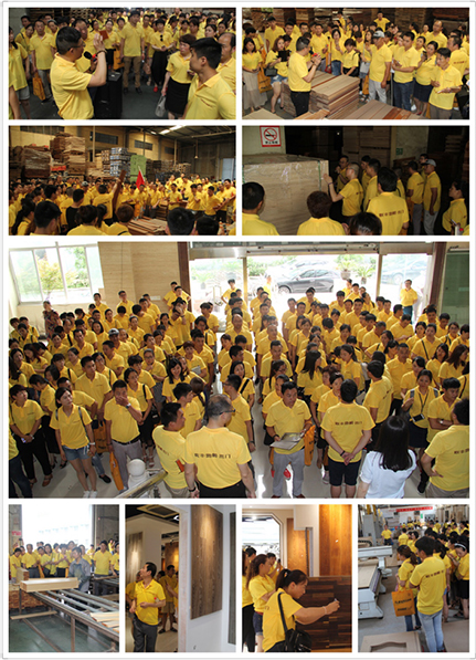 培訓間隙,學員們走進聯豐實木/實木復合地板、強化地板、木門三大生產基地。在整潔明亮的車間前,在井然有序、亞太地區最先進的實木地板油漆線前,李總為大家詳細講解行業獨有的3-工序,分享了聯豐精品“零缺陷”出爐的全過程,學員們無不為聯豐如此過硬的質量、優秀的品質所震撼,無不為擁有一個強大而又榮耀的品牌而自豪!