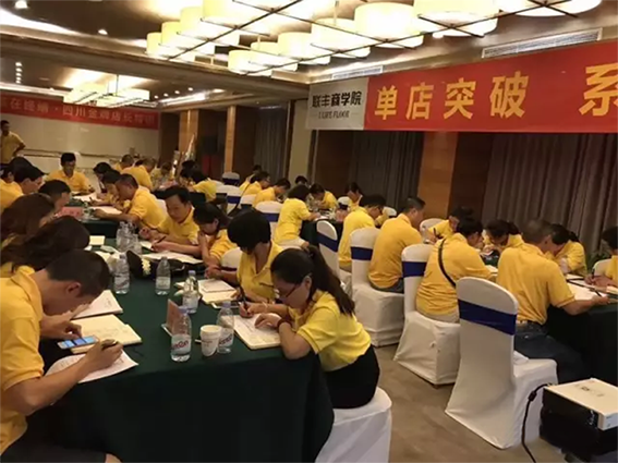 晚間六時起,余下的兩天兩夜是屬于聯豐全體四川銷售精英的狂歡,二十四小時電光火石般的金牌店長特訓營給大家帶來了前所未有的頭腦風暴,特訓營主講聯豐木業總經理、商學院院長李玉明先生以自己在地板行業近二十年的沉淀,豐富的實操經驗,成功的營銷案例給在座的學員作了精彩分享!