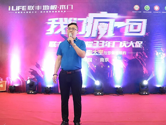 在近萬名業主翹首以盼中,蘇州聯豐木業有限公司總經理李玉明先生首先致歡迎詞,他指出,始創于1985年的聯豐,在榮耀33年的發展歷程中,一直都是以最好的產品,最佳的服務來奉獻給廣大的業主,適逢周年大慶,聯豐不搞大型慶典,而是連續三年以南京作為主會場,在全國二十多個省區設置分會場,同日掀萬人瘋搶狂潮。