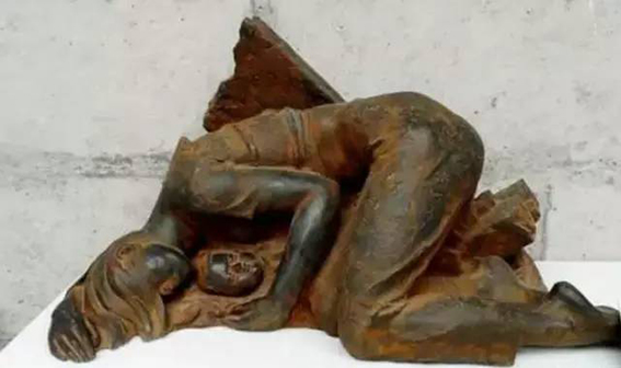 這個雕塑作品,名叫《汶川母親》,表現的畫面是:汶川地震救援過程中,一位女警察用乳汁哺育受災兒童。