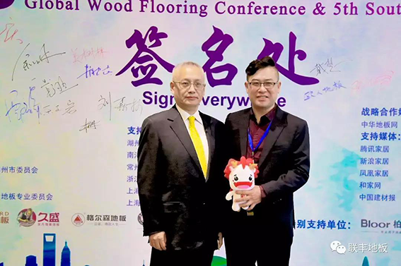 湖州市人民政府副市長蔣偉峰,中國國際貿易促進會湖州委員會會長金凱,湖州市民營企業聯合會會長邵堅,湖州市經濟和信息化委員會副主任蔡豐,湖州市南潯區人民政府副區長沈雪芬,中國質量萬里行促進會會長、原國家質監總局總工程師劉兆彬,工信部運行監測協調局局副局長余濤,工信部國際經濟技術合作中心副主任李毅鍇,國家林草局林產品國際貿易研究研究中心主任王登舉,商務部市場建設司規劃處長劉文,中國木材與木制品流通協會會長劉能文,中國木材與木制品流通協會副會長兼秘書長李佳峰,中國木材與木制品流通學會首席專家李光前,以及來自于全球知名地板企業負責人等嘉賓齊聚一堂,探討全球木地板行業發展、中國地板發展形勢、國際貿易爭端與地板產業轉型升級等問題,促進木地板行業實現可持續發展。蘇州聯豐木業有限公司總經理李玉明應邀參會,同時,專注于地板研發和制造三十三年的聯豐地板榮膺中國地板質量售后服務金獎”!