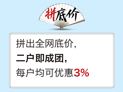 拼出全網底價,二戶即成團,每戶均可優惠3%!五一大放價,讓利大出血!