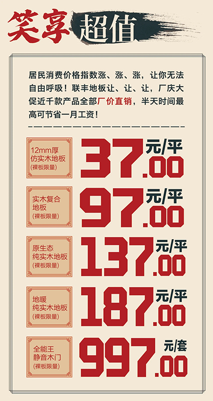 喜歡他,就趕快報(bào)名,親臨聯(lián)豐與偶像零距離,現(xiàn)場(chǎng)更為您的愛(ài)家準(zhǔn)備了數(shù)百款品優(yōu)價(jià)廉的地板和木門(mén)產(chǎn)品,砸金蛋、抽大獎(jiǎng)等環(huán)節(jié)將誕生百萬(wàn)豪禮,就等你來(lái)?yè)專?/span>
