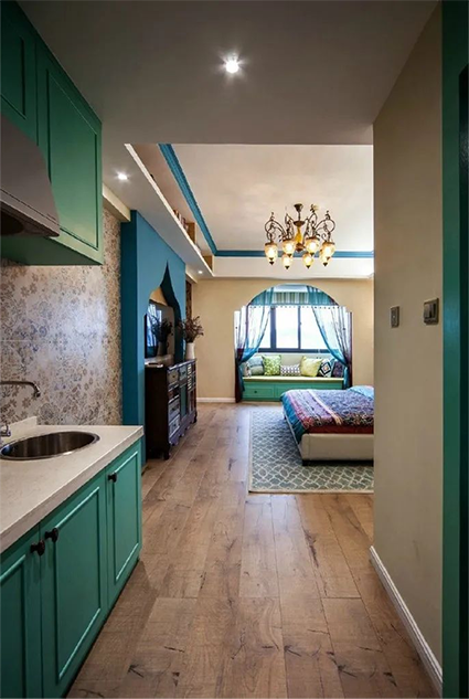 01 色彩性:波西米亞裝修風格強調色彩的搭配和使用,通常采用明亮、鮮艷、大膽的顏色來展現個性和獨特的風格。同時,也可以通過不同材質和紋理的搭配,營造出更加飽滿和層次的色彩效果。