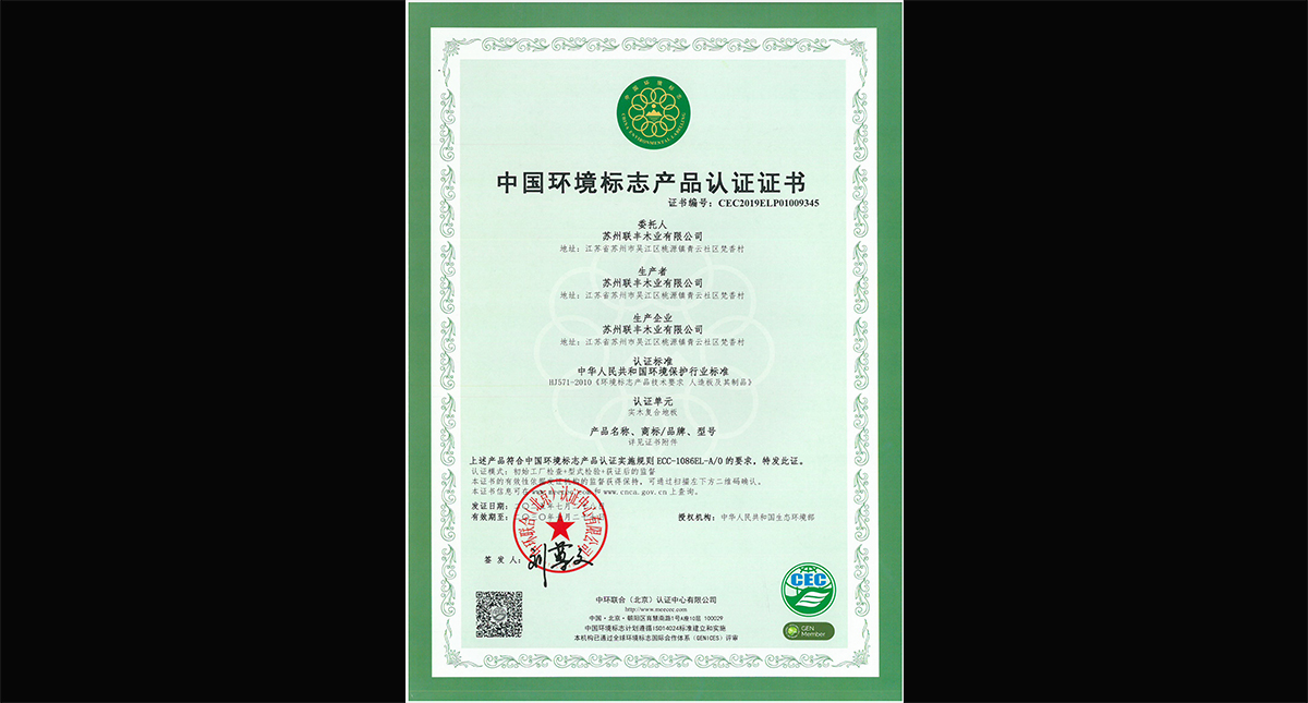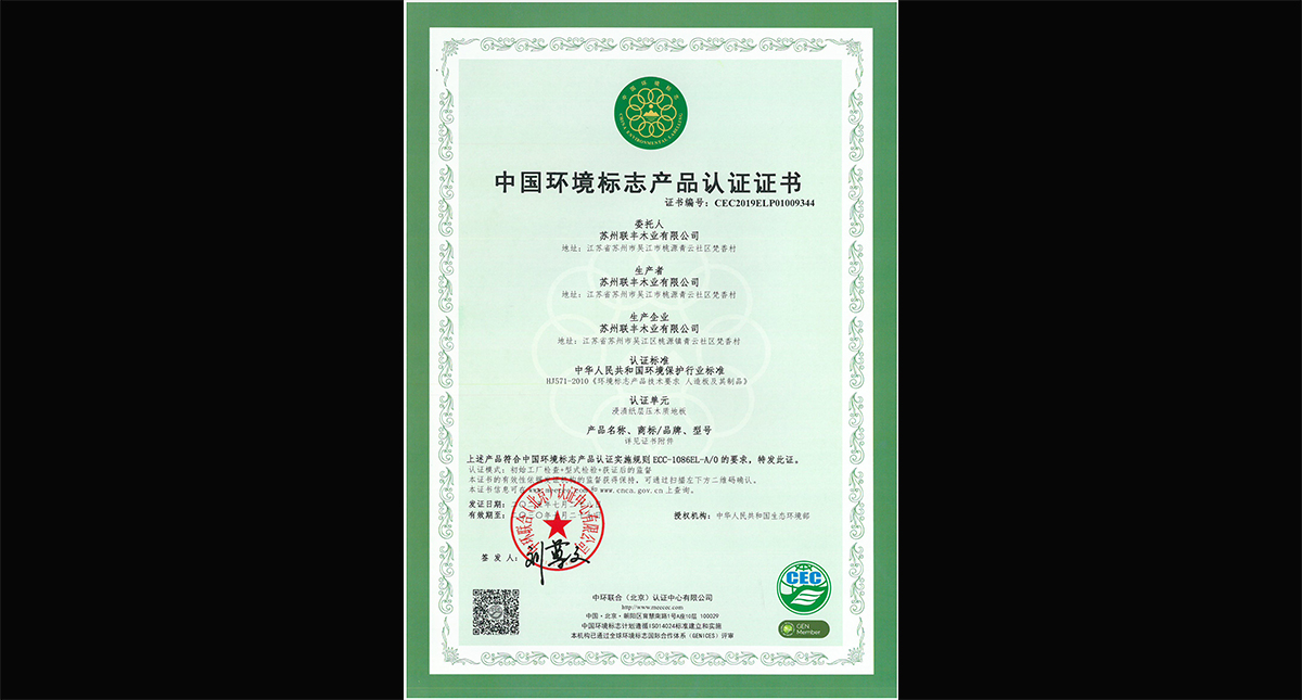 中國(guó)環(huán)境標(biāo)志產(chǎn)品認(rèn)證證書(shū)(實(shí)木復(fù)合)