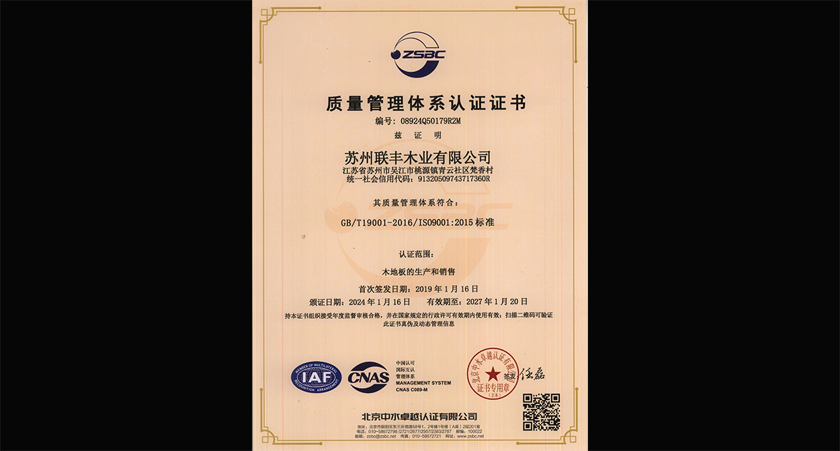 質(zhì)量管理體系認(rèn)證證書(shū)